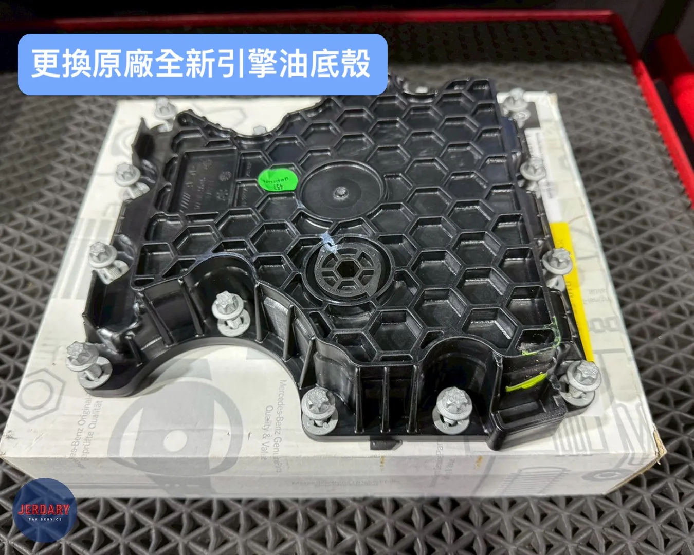 • 更換賓士原廠全新油底殼: 我們更換原廠全新零件,確保其材質強度與密封面的精準度完全符合 AMG 的高性能標準,杜絕再次滲漏的風險。
