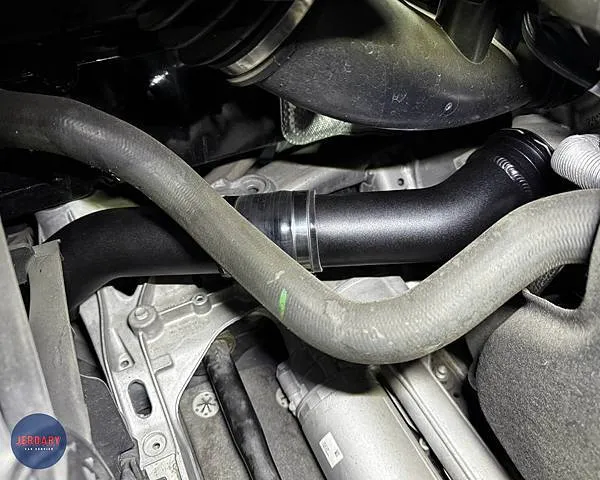 B48 引擎的原廠塑膠渦輪進氣管路,在長期面對渦輪增壓產生的極高壓力和高溫時,常有脆化、爆裂的風險,特別是有進行動力晶片升級的車輛。