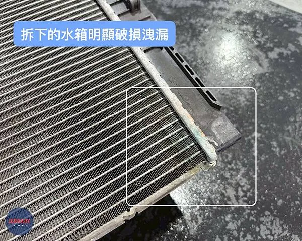 - 水箱破損洩漏: 水箱作為主要的散熱部件,也因長期使用出現破損,導致冷卻液持續流失。