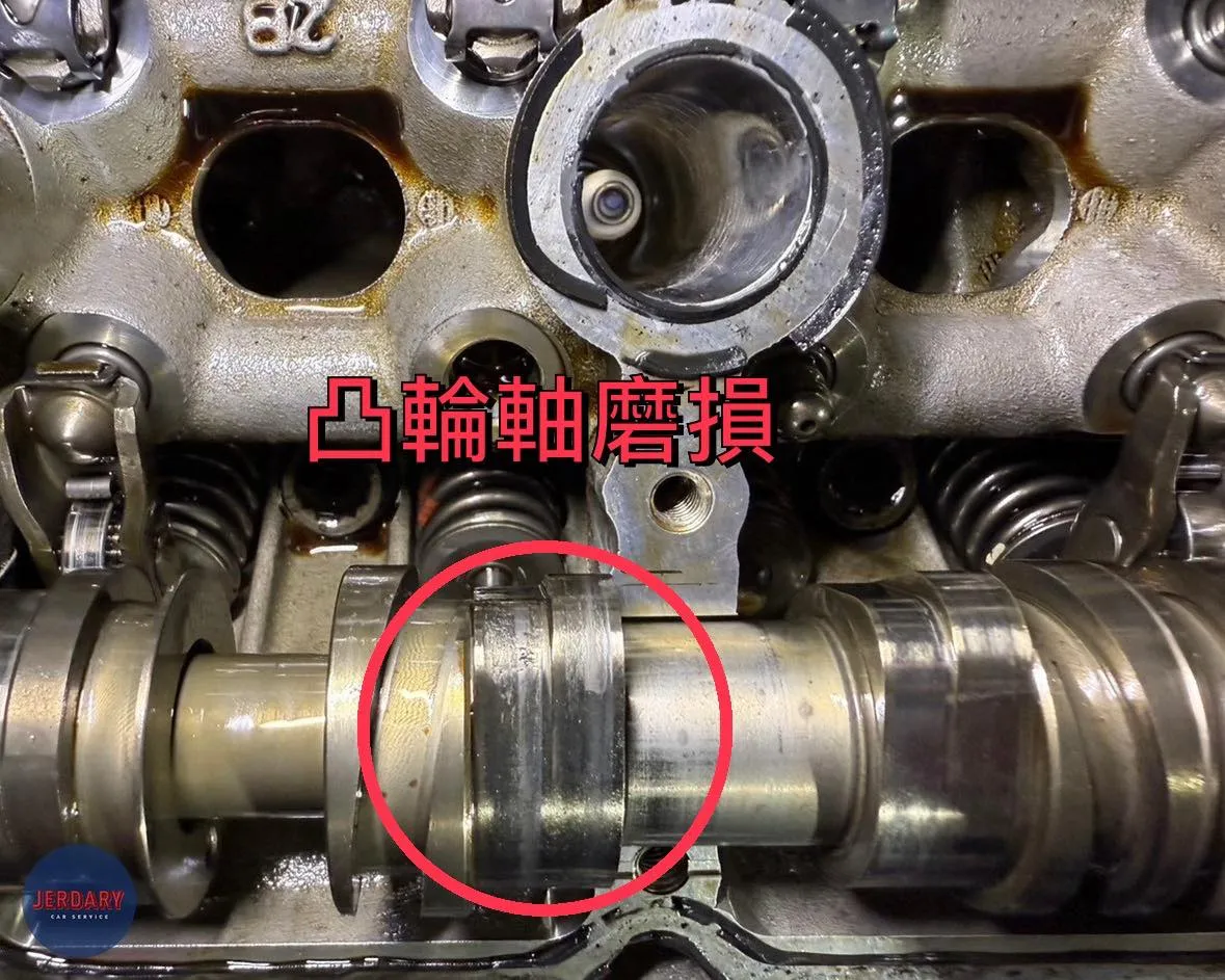 照片中可以明顯看出凸輪軸磨損的痕跡