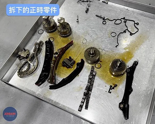• 正時導板容易發生破碎: 導板負責引導和穩定正時鏈條的運行。一旦導板材質老化或破碎,其碎片會散佈在引擎內部。
