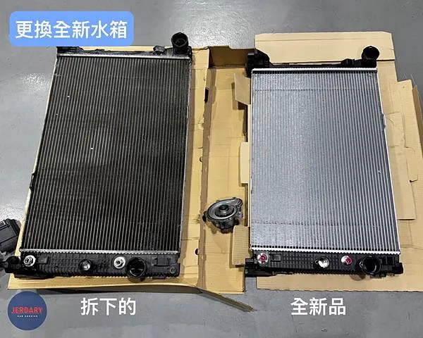 為了徹底解決車主的困擾並確保冷卻系統的長期穩定性,傑德瑞汽車為這輛賓士 W212 E250 更換了以下全新的零件: