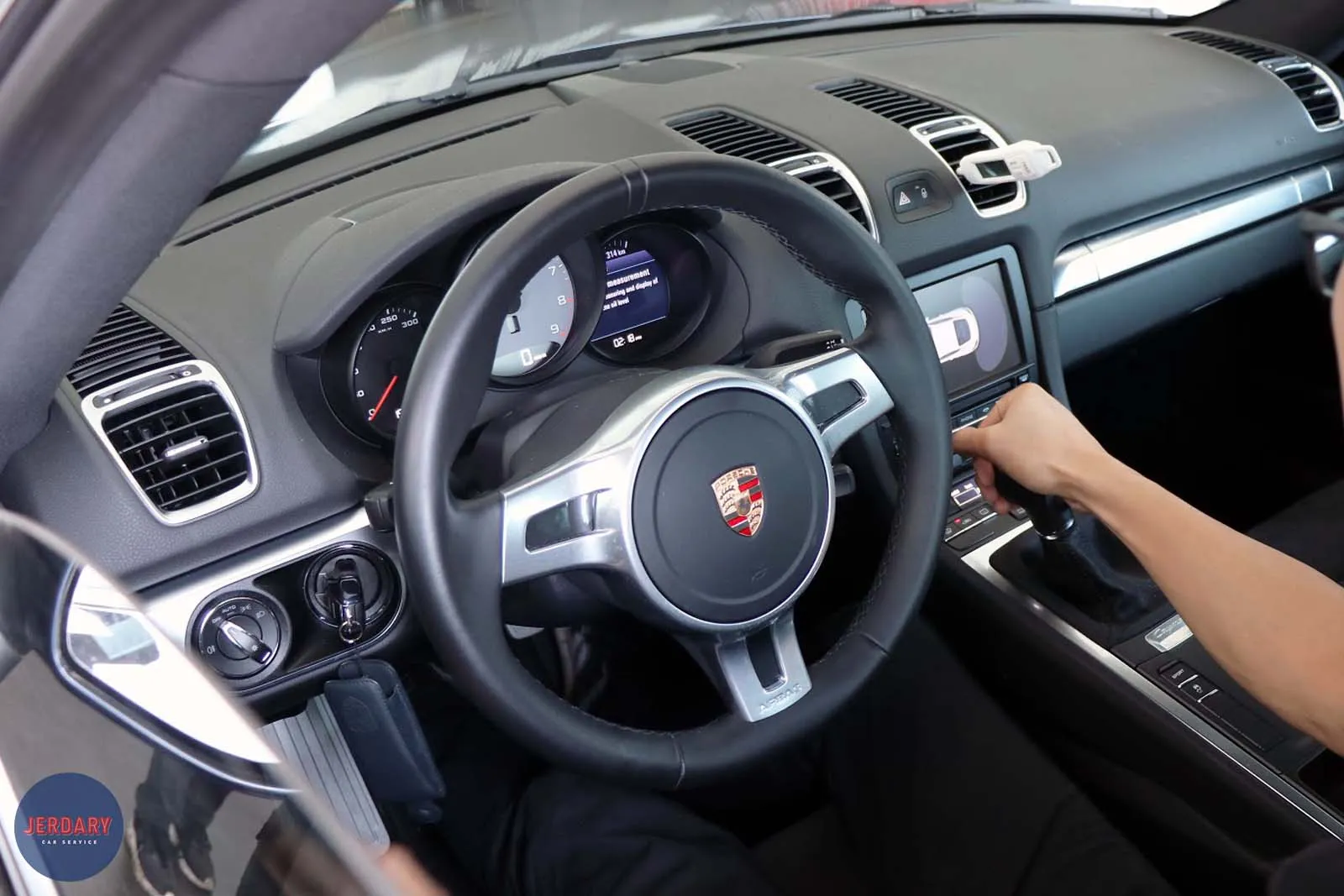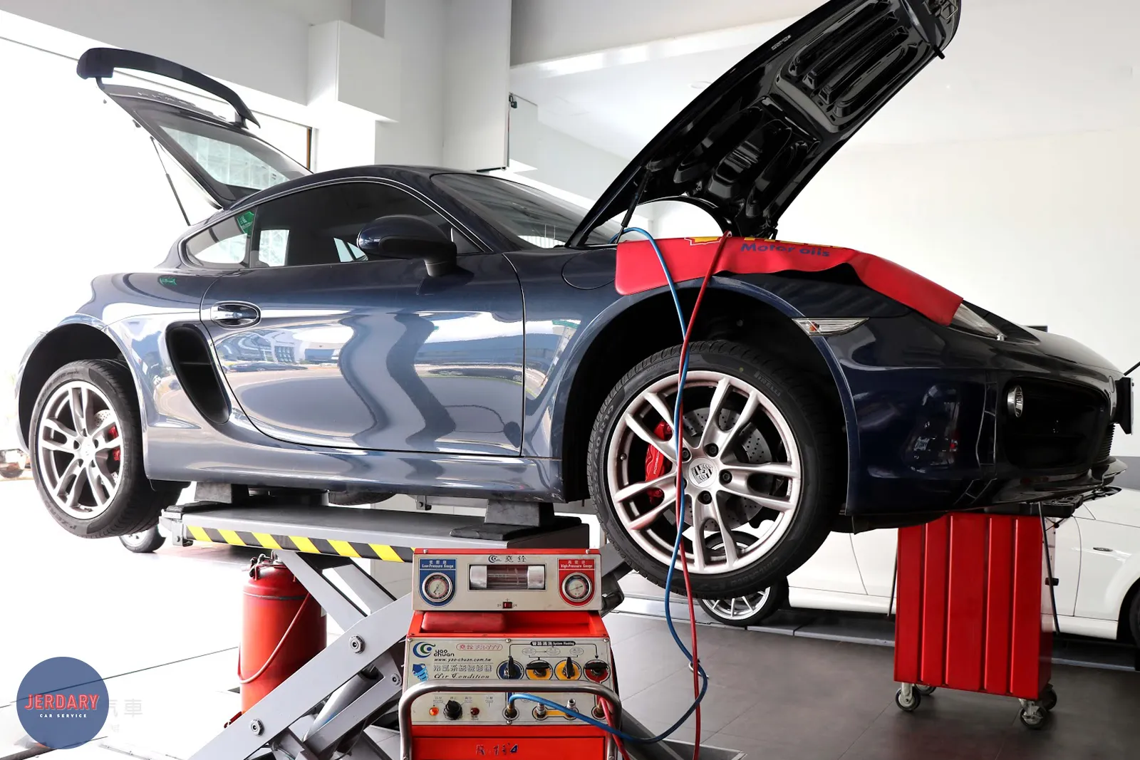 這次進廠保養的是2015年的 Porsche 718 Cayman S 里程1萬5千公里,車主特地來台中為愛車進行全車檢查及保養維修,車輛經技師檢查評估後做以下保養維修項目,全車68項安全檢查,機油、機油芯、煞車油更換以及冷氣系統清潔保養。
