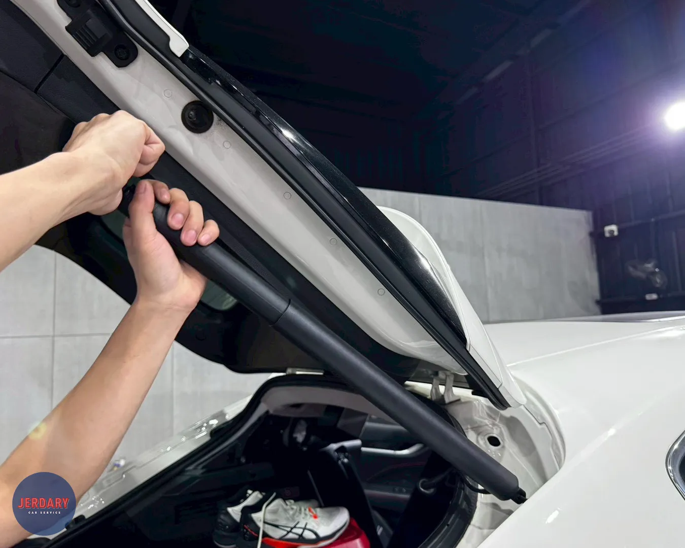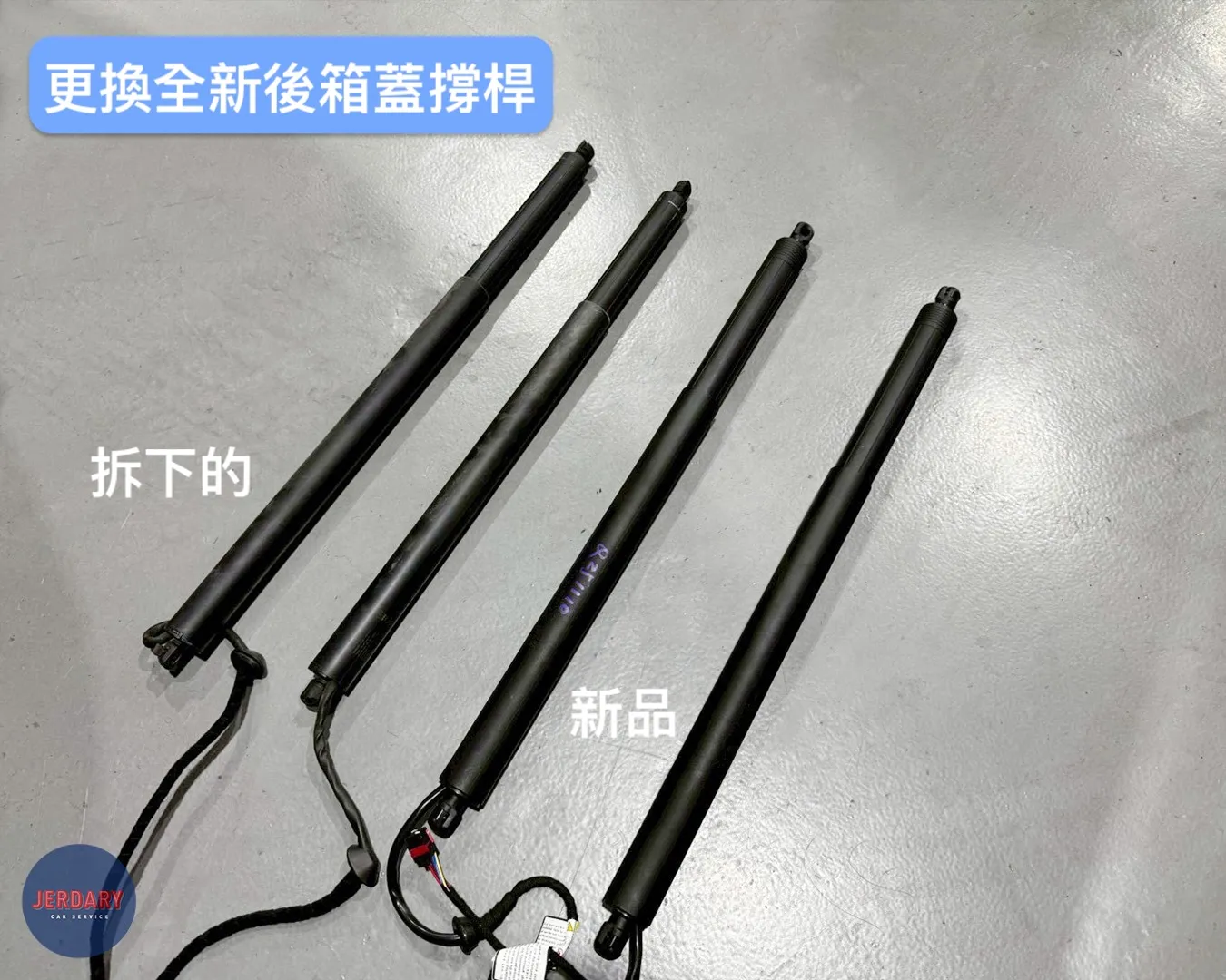 - 後箱蓋撐桿更換: 電子/液壓撐桿老化會導致後車廂蓋開啟不順或無法支撐。我們更換了全新後箱蓋撐桿,讓車主重新享受車輛原有的便利。